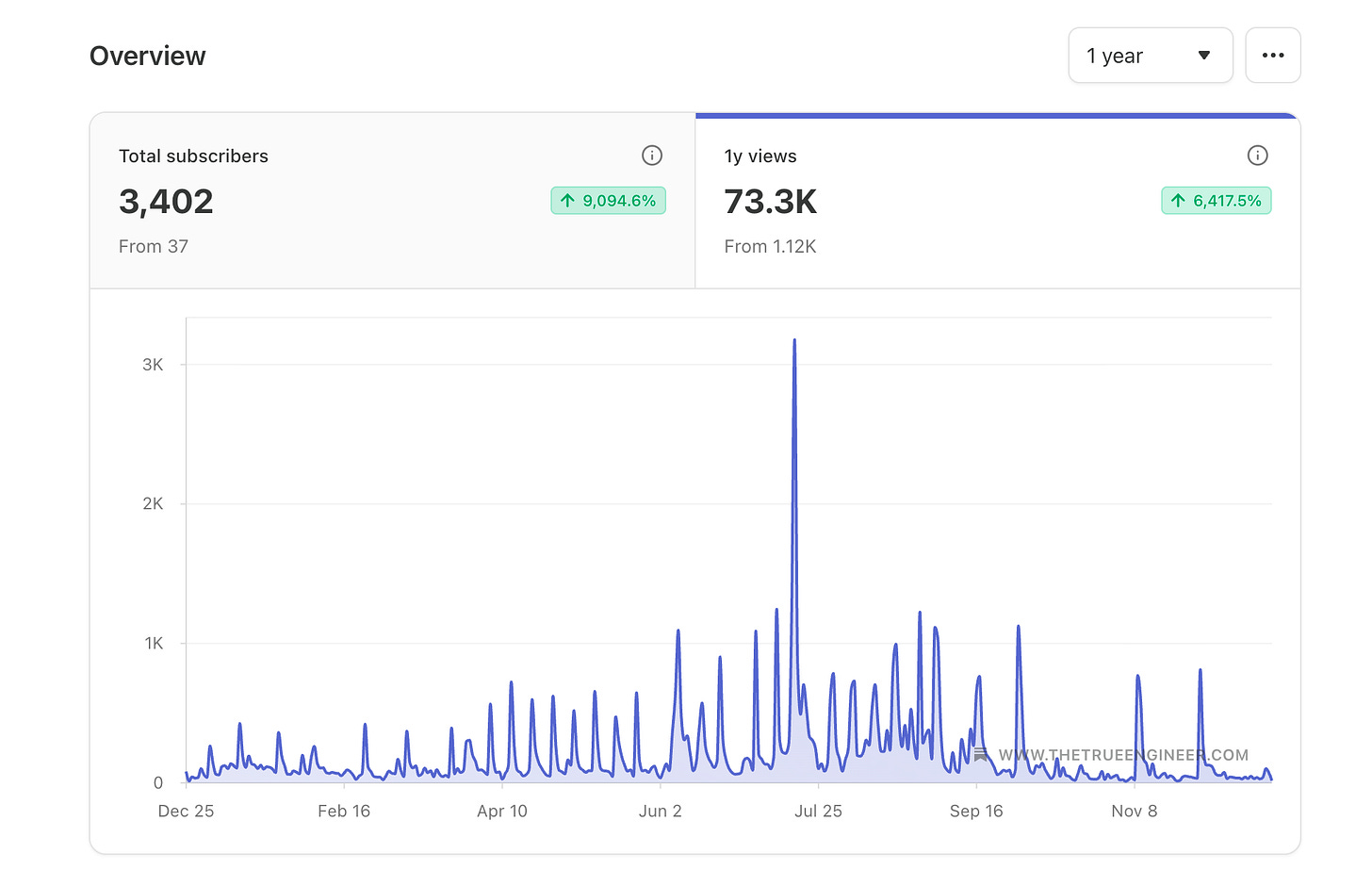 2025 marked a huge milestone for The True Engineer newsletter. Here are some stats showing how far we have come this year:
