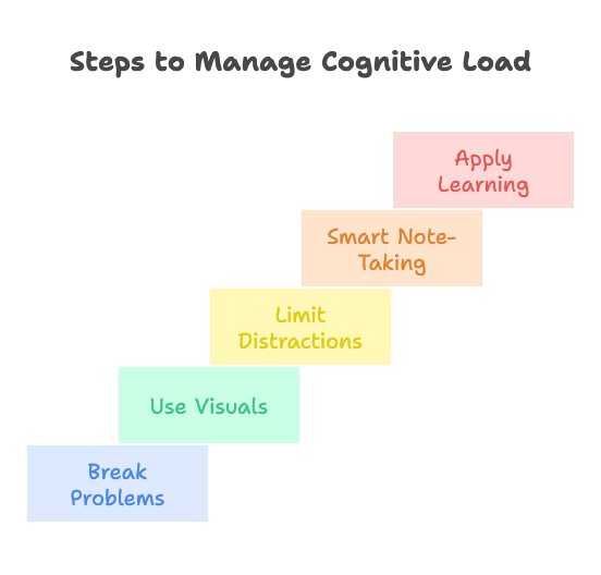 Learning is hard, but it doesn’t have to be overwhelming. By managing cognitive load—breaking down problems, using visuals, limiting distractions, taking smart notes, and applying what you learn—you make it easier for your brain to absorb and retain new concepts.